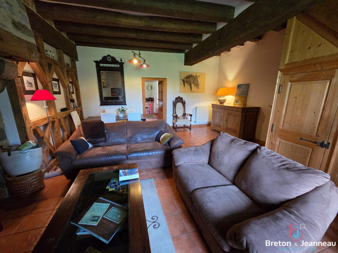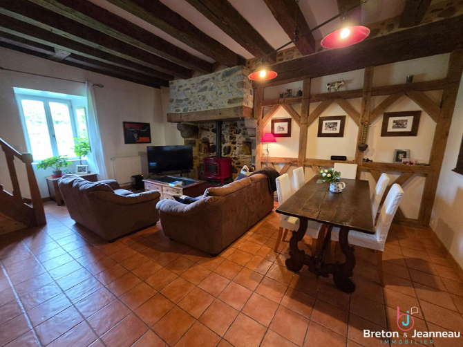 La maison principale, construite en pierre et couverte en ardoises, développe environ 171 m² de surface de plancher. Parfaitement entretenue, elle allie confort et caractère :
