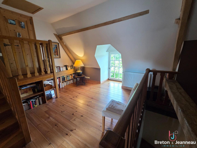 Située à Blandouet/Saint-Jean, à seulement 10 minutes de l'accès autoroutier et de la cité de caractère de Sainte-Suzanne, cette propriété rare séduit par son environnement préservé et son authenticité. Nichée au coeur d'un ensemble de plus de 8 hectares (8 ha 34 a 91 ca), elle offre un cadre naturel exceptionnel composé d'environ 5 hectares de prairies, complétés par des taillis, une rivière bordant la propriété et des espaces d'agrément. Le site est sublimé par la présence d'une ancienne chapelle pleine de charme.