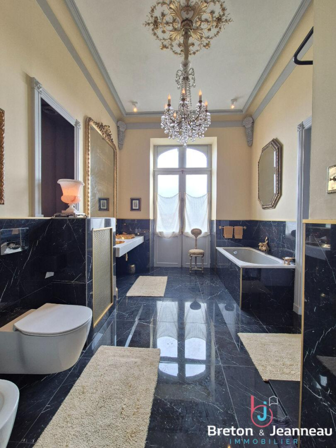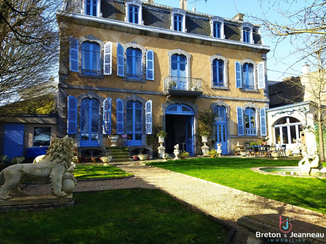 Édifiée en 1878, ce remarquable hôtel particulier Belle Époque développe environ 450 m² habitables et bénéficie d'un emplacement exceptionnel au coeur du centre historique de Mayenne, à proximité immédiate du château et des promenades en bord de rivière.