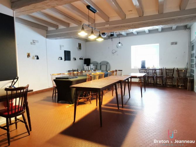 A Bais, en Mayenne, nous vous proposons à la vente cet immeuble de rapport comprenant une partie habitation et une partie commerciale (activité de bar / restauration). Locataires en place, loyer mensuel 622 euros. Taxe foncière à la charge du propriétaire.