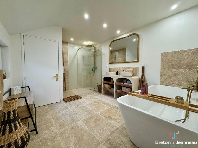 A visiter sans attendre ! Cette magnifique longère en pierre, entièrement rénovée, développe une surface habitable de 177 m² et s'inscrit dans un cadre champêtre, verdoyant et soigneusement aménagé, offrant calme et sérénité.