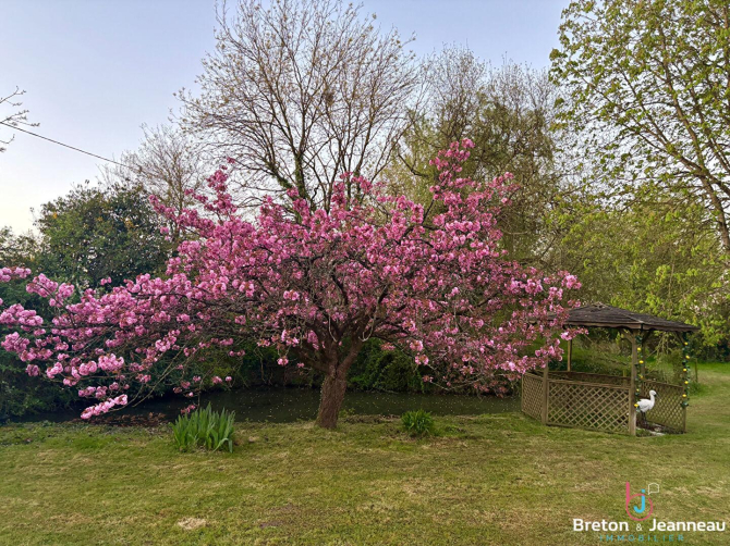 A l'extérieur, le terrain arboré et paysagé de plus de 3 000 m² invite à la détente, avec son espace mare et son garage-atelier.