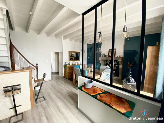 BRETON et JEANNEAU IMMOBILIER vous propose EN EXCLUSIVITÉ à LOUVIGNÉ DU DÉSERT une maison d'habitation construite en pierres et parpaings, couverte en ardoises naturelles, synthétiques et tôles type bac acier et comprenant au sous-sol une cave (avec ballon d'eau chaude thermodynamique et adoucisseur d'eau), au rez-de-chaussée, une entrée ouverte sur séjour avec cheminée (déclarée fonctionnant), une cuisine aménagée et équipée, salon à la suite, une chambre, salle d'eau avec cabine douche, WC, vasque sur meuble, sèche serviette électrique, buanderie.