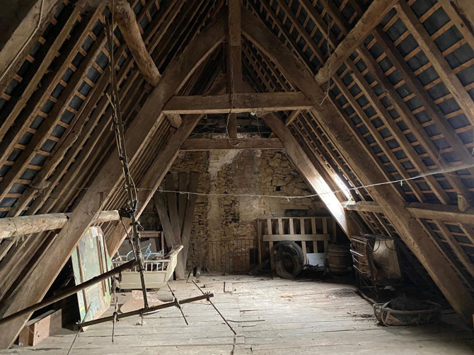 Au-dessus, un grenier sous toiture.