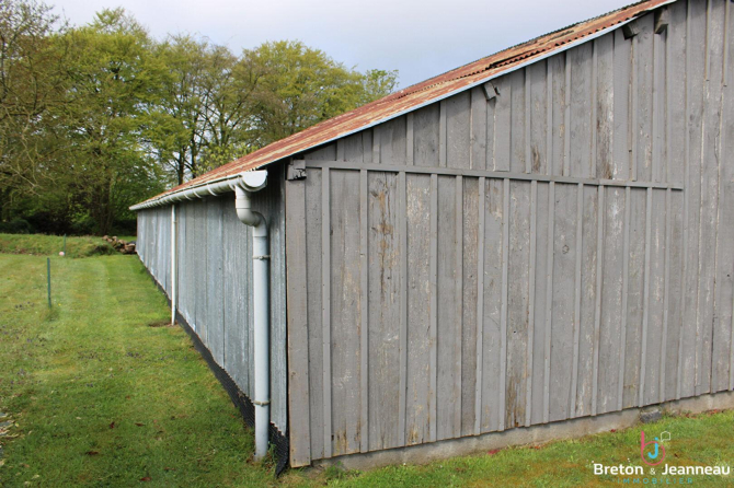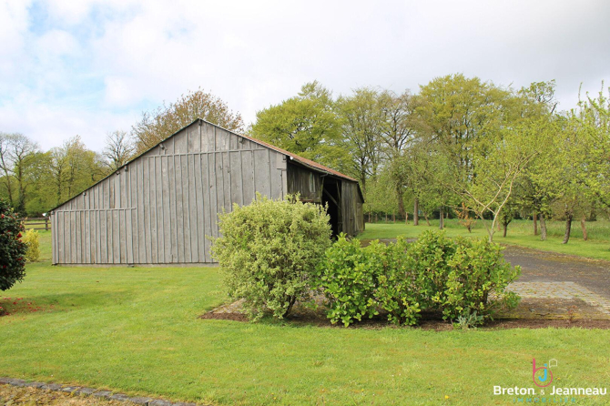 Extérieurs : grand terrain arboré avec arbres fruitiers, deux hangars fermés (idéal stockage, atelier ou projet), une cour goudronnée.
