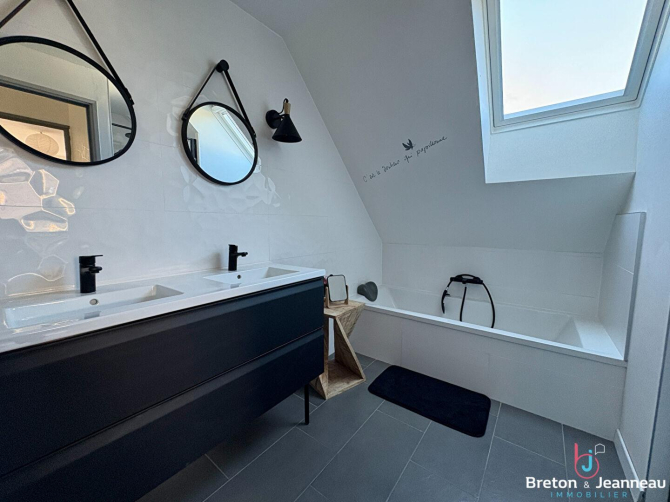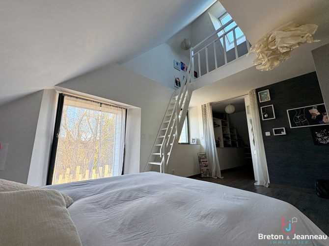 Cette belle maison, idéalement située au coeur de la commune de Saint-Berthevin, saura vous séduire par ses beaux volumes et son jardin cocooning.