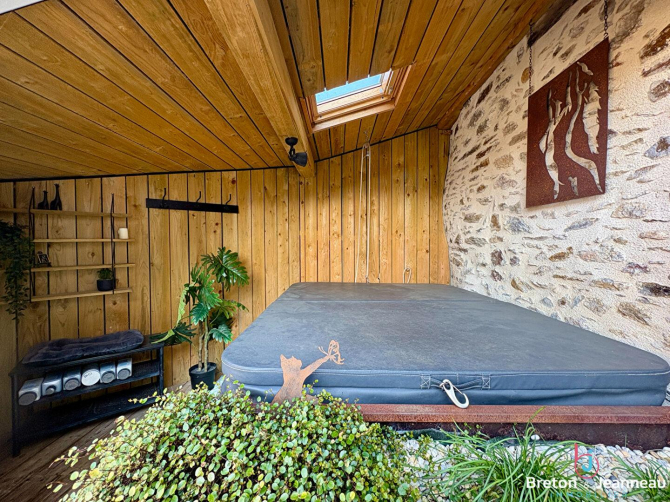 A l'extérieur, vous serez conquis par un terrain paysagé où il fait bon vivre, agrémenté d'un espace détente avec spa, parfait pour des moments de relaxation en famille ou entre amis.