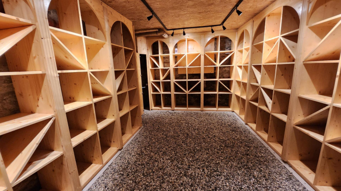 Une cave à vin aménagée et climatisée.