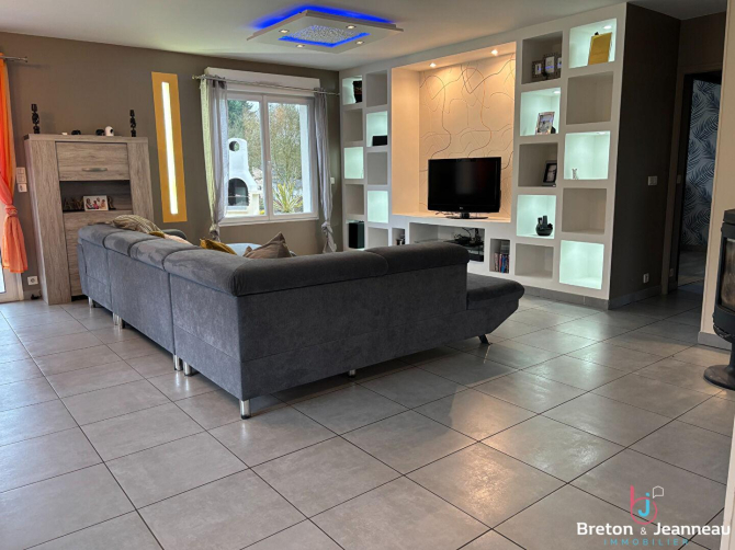 Venez découvrir à la vente ce plain-pied de 2010 vous offrant une pièce de vie de plus de 46 m² avec poêle à bois, quatre chambres avec placard, une salle de bains et un wc.