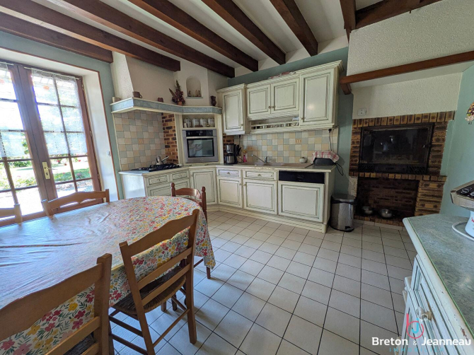 Vous apprécierez sa grande pièce de vie, conviviale et lumineuse, ainsi que sa cuisine aménagée et équipée, agrémentée d'une cheminée avec insert et répartiteur d'air chaud, permettant de chauffer efficacement toute la maison.