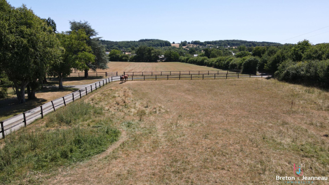 A Vimartin-sur-Orthe, en Mayenne et limite Sarthe, venez découvrir cette belle propriété équestre sur un terrain d'environ 4ha. Elle comprend une maison de caractère d'une surface habitable de 250m² offrant hall d'entrée, salle à manger, salon avec cheminée insert, cuisine, bureau, trois salles d'eau, une salle de bains, une suite parentale PMR, cinq autres chambres dont une en enfilade et trois wc. En extérieur vous profiterez d'une dépendance d'environ 150m² avec tomettes, poutres, cheminée et cuisine; d'une seconde dépendance comprenant trois boxes (10.5m² chacun), douche à chevaux, sellerie, marcheur électrique 3 places et de plusieurs hangars. A visiter!