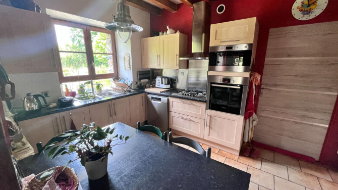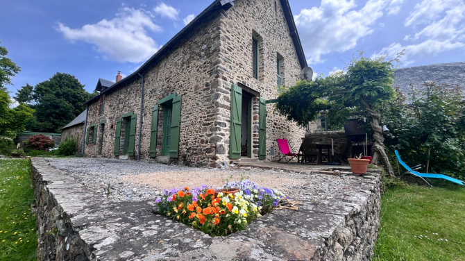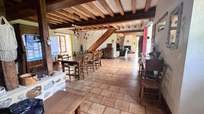 Vous aimez la pierre, l'authenticité et le calme venez visiter cette belle longère en pierres de plus de 200 m² offrant au rez-de-chaussée : un espace de vie de plus de 90 m² (cuisine aménagée équipée, séjour, salon avec insert), une salle d'eau avec wc, une arrière-cuisine, un garage avec atelier.