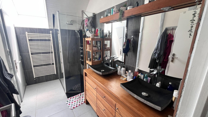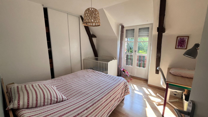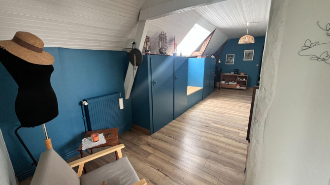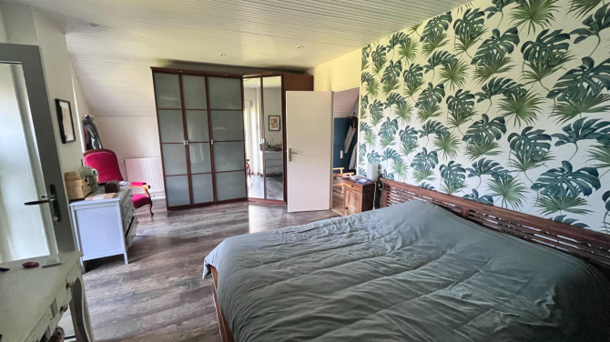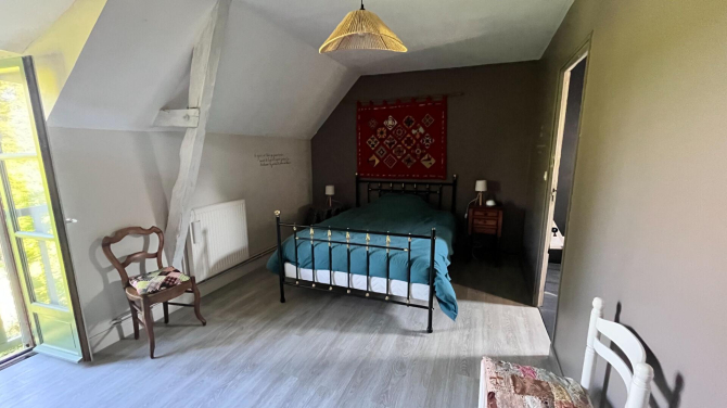 A l'étage : mezzanine, 4 chambres, dont une avec salle d'eau privative, une salle d'eau avec wc, un grenier.